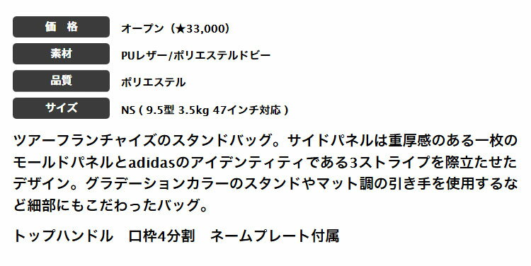 【FG】2020年モデル アディダス ゴルフ GUW09 ツアー プロ スタンドバッグ キャディバッグ キャディーバッグ [9.5型]