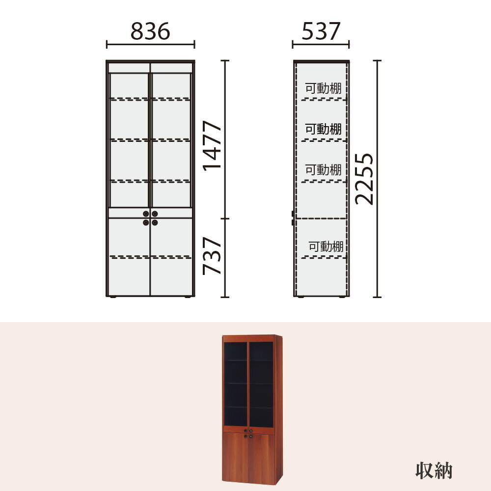 シリーズ名fantoni/ファントーニ D8 サイズ幅83.6×奥行き53.7×高さ225.5cm 内 寸上段:幅76.4×奥行き46.2×高さ144cm/下段:幅76.4×奥行き46.2×高さ70cm 重量95kg メーカー型番d8d643 付属品棚板:上段3枚 下段1枚 組立設置料金\16500(税込) 対応商品コードイタリアンウォールナット_667122