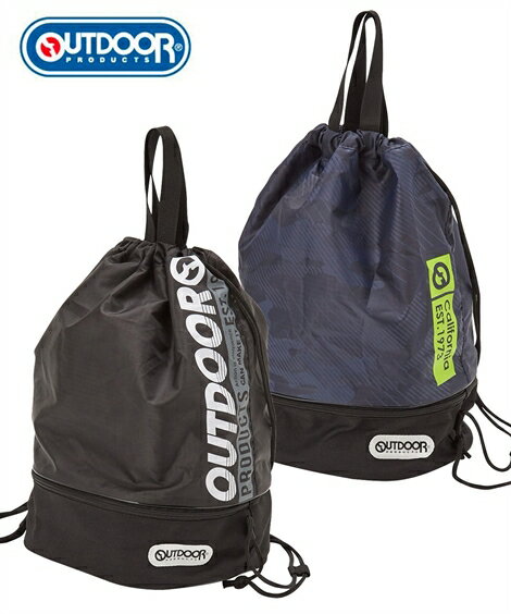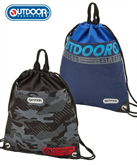 OUTDOOR バッグ キッズ 男の子 ナップサック式 プールバック ネイビー ロゴ /黒 迷彩 ニッセン