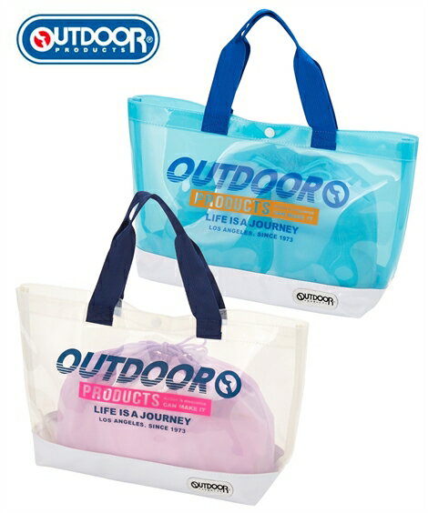 OUTDOOR バッグ キッズ 女の子 巾着付 クリア トート型 プールバック ブルー/白 ニッセン