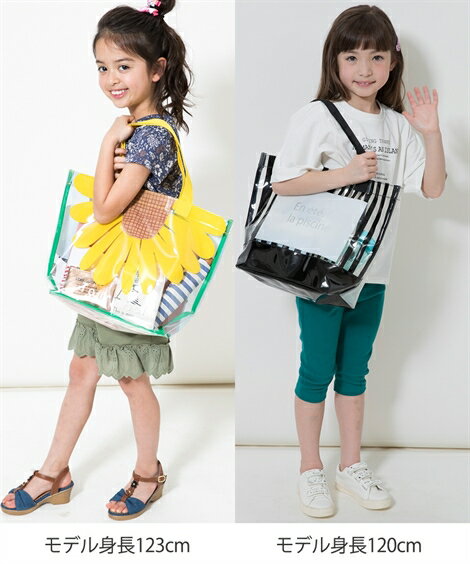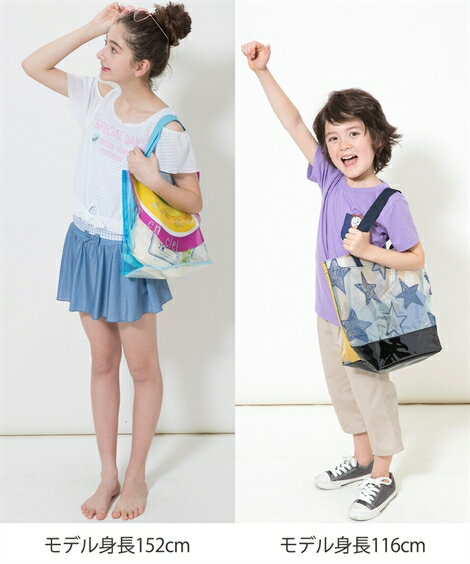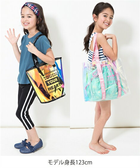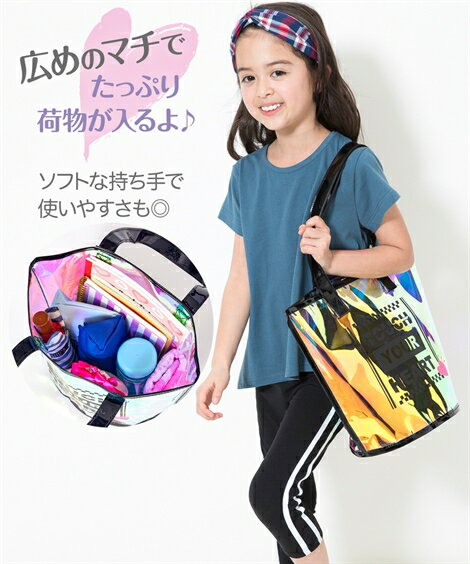 バッグ キッズ 女の子 巾着付 クリア トート型 プール ストライプロゴ/ドットハート/モノトーンロゴ ニッセン