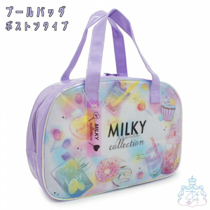 プールバッグ ボストン型 ミルキーコレクション ビニールバッグ 子供 女の子 キッズ 小学生 パープル かわいい プール 海 水泳 ボストンバッグ ボストンバック レディース 女子 女の子 旅行